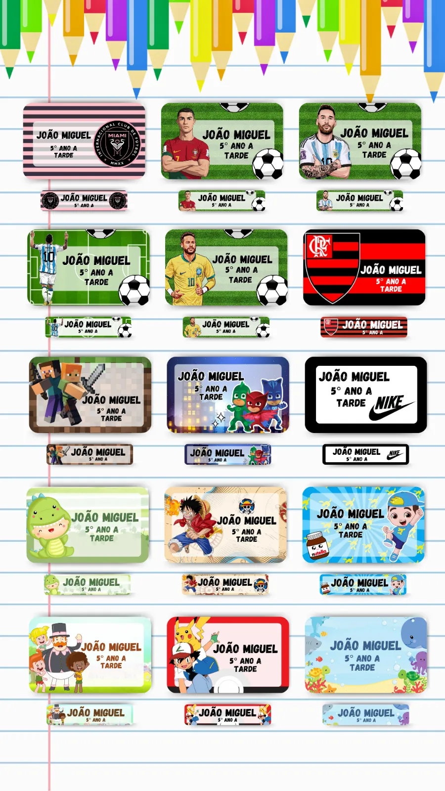 Kit 01 - 107 Etiquetas escolares Masculino - Brinde um chaveiro